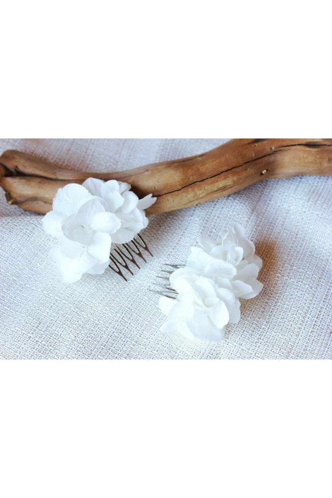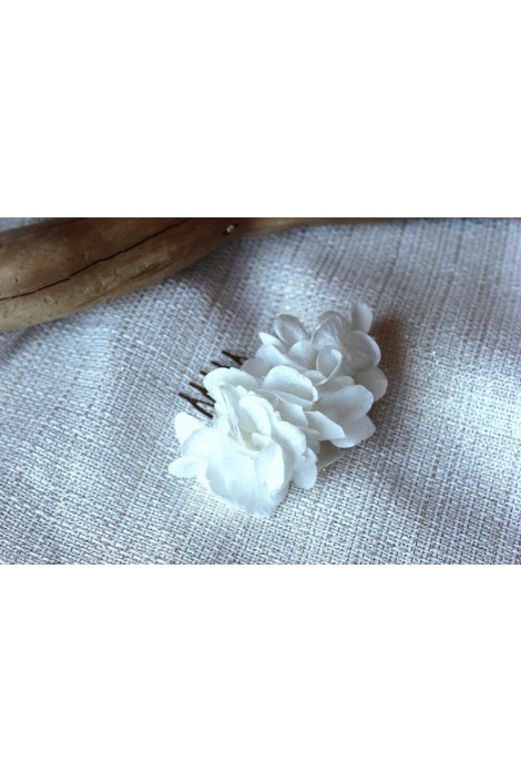 Ce peigne est réalisé avec les pétales d ’hortensia stabilisée blanches idéale pour un coiffure style bohème chic sur un chignon, une demi-queue
