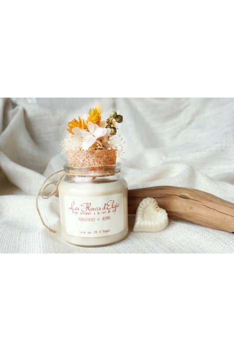 Pour la décoration j’utilise des fleurs séchées et stabilisées et mes parfums sans CMR et en provenance Grasse, ville du parfum.