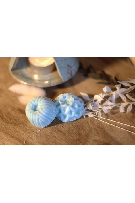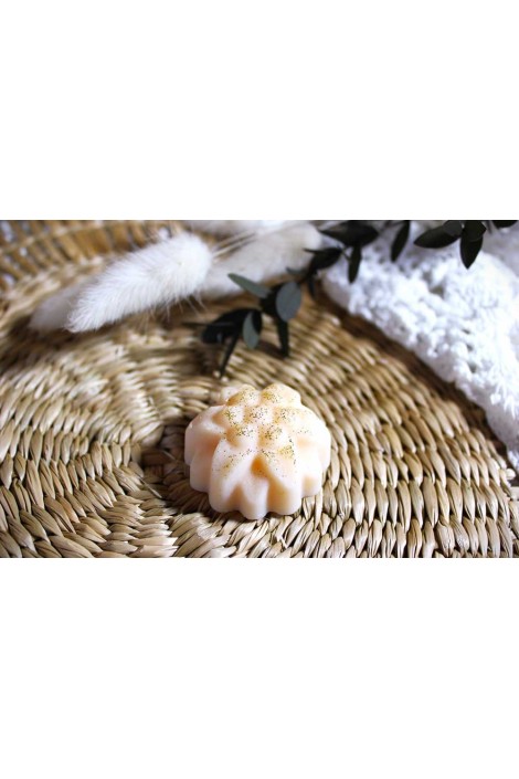 Les fondants sont réalisés entièrement à la main et par coulage avec de la cire végétale biodégradable et non testée sur les animaux, sans OGM ni pesticides.